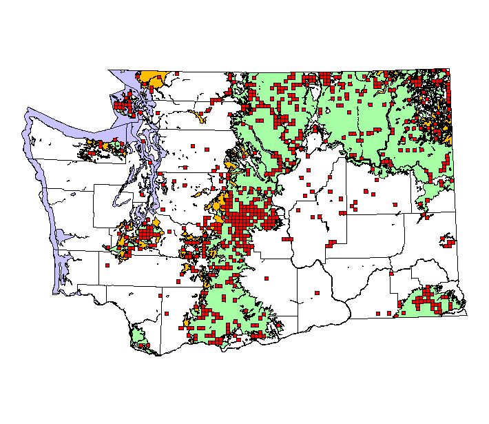 NatureMapping observations by townships during the breeding season. (36 square miles = township) |
