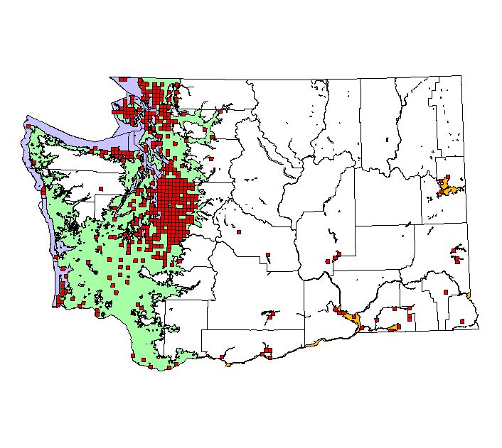 Breeding Bird Atlas blocks All observations (not just breeding activity) between 1987-1995 (9 square miles/block) |