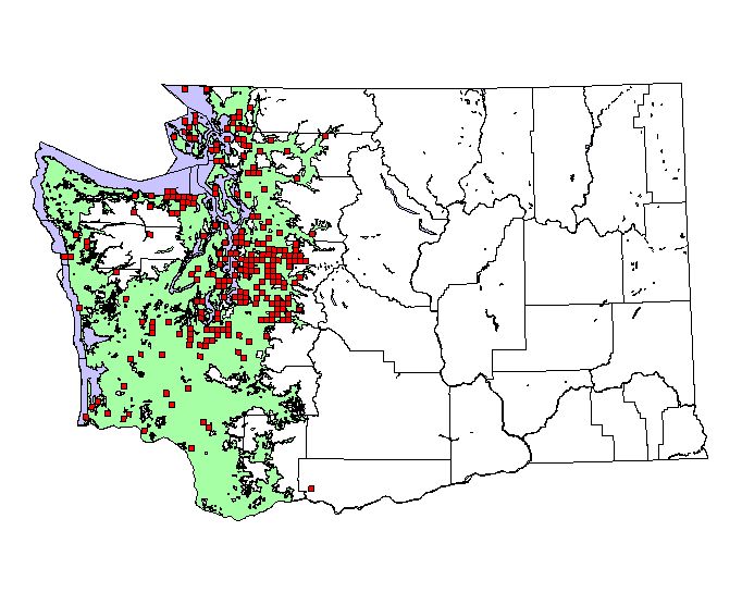NatureMapping observations by townships during the breeding season. (36 square miles = township) |