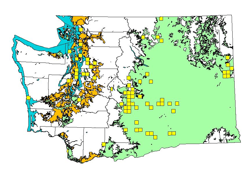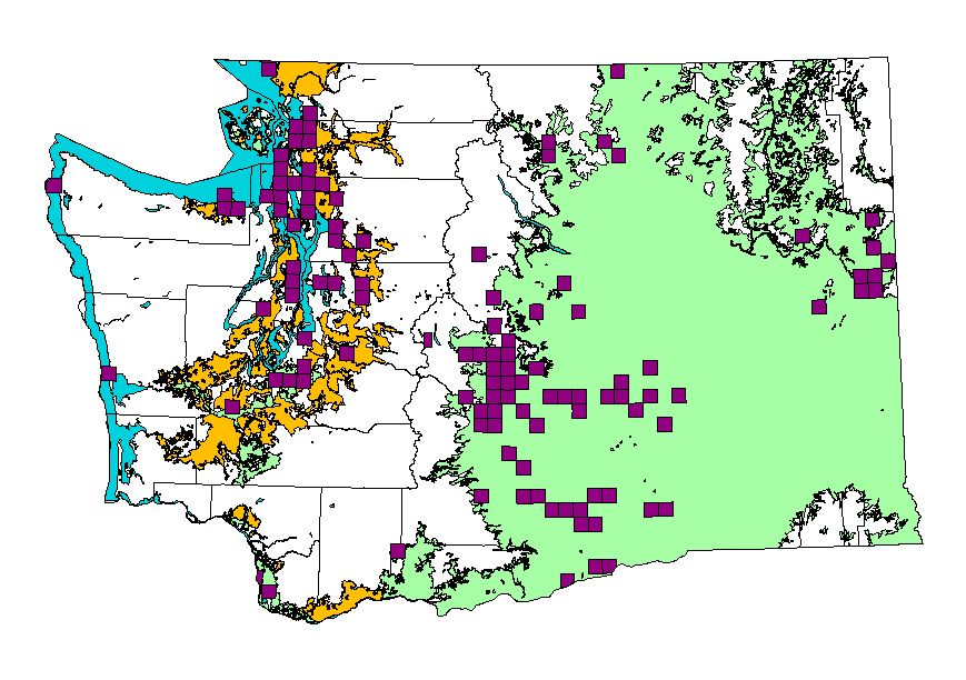 NatureMapping observations by townships during the breeding season. (36 square miles = township) |